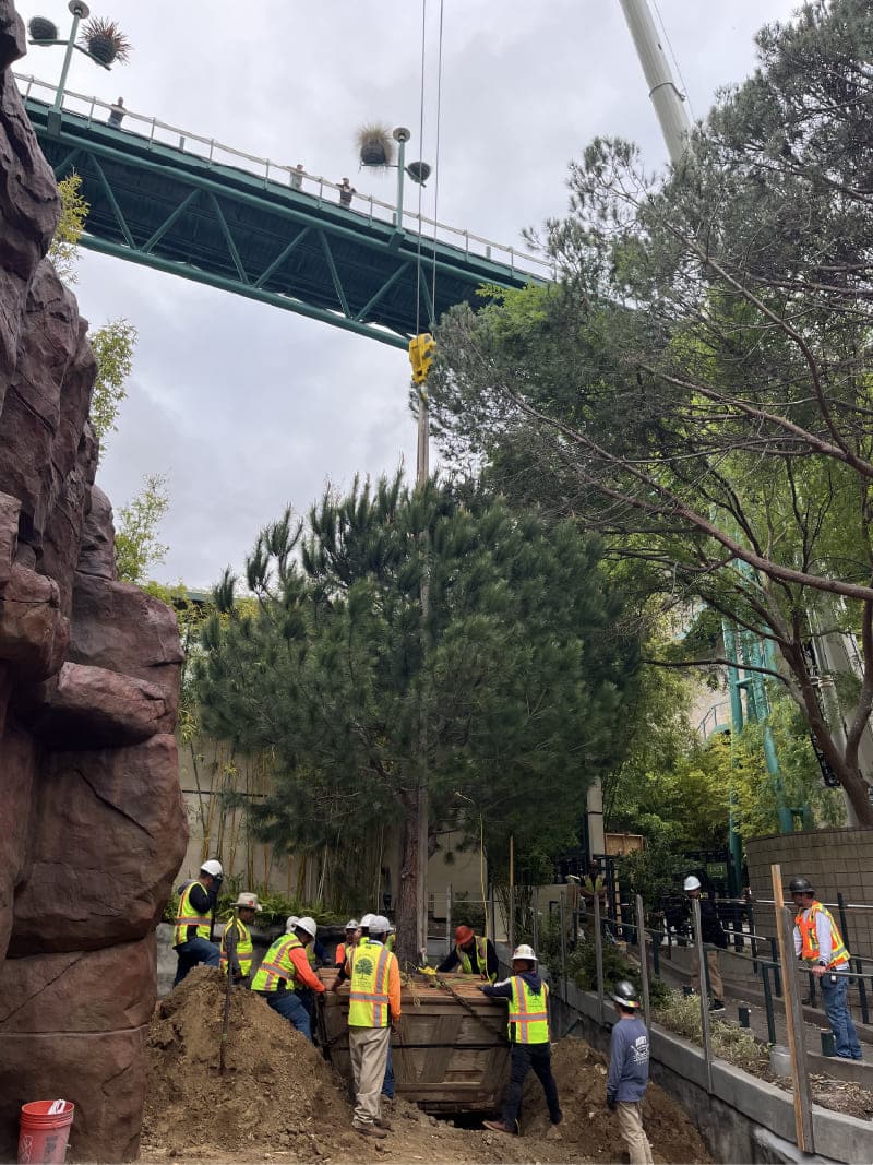 We help resorts create immediate visual impact by incorporating large, mature trees that offer shade and enhance the overall guest experience. At Disneyland’s Cars Land, we moved large pine trees to bring the park’s vision to life, providing shade and an immersive atmosphere for guests.